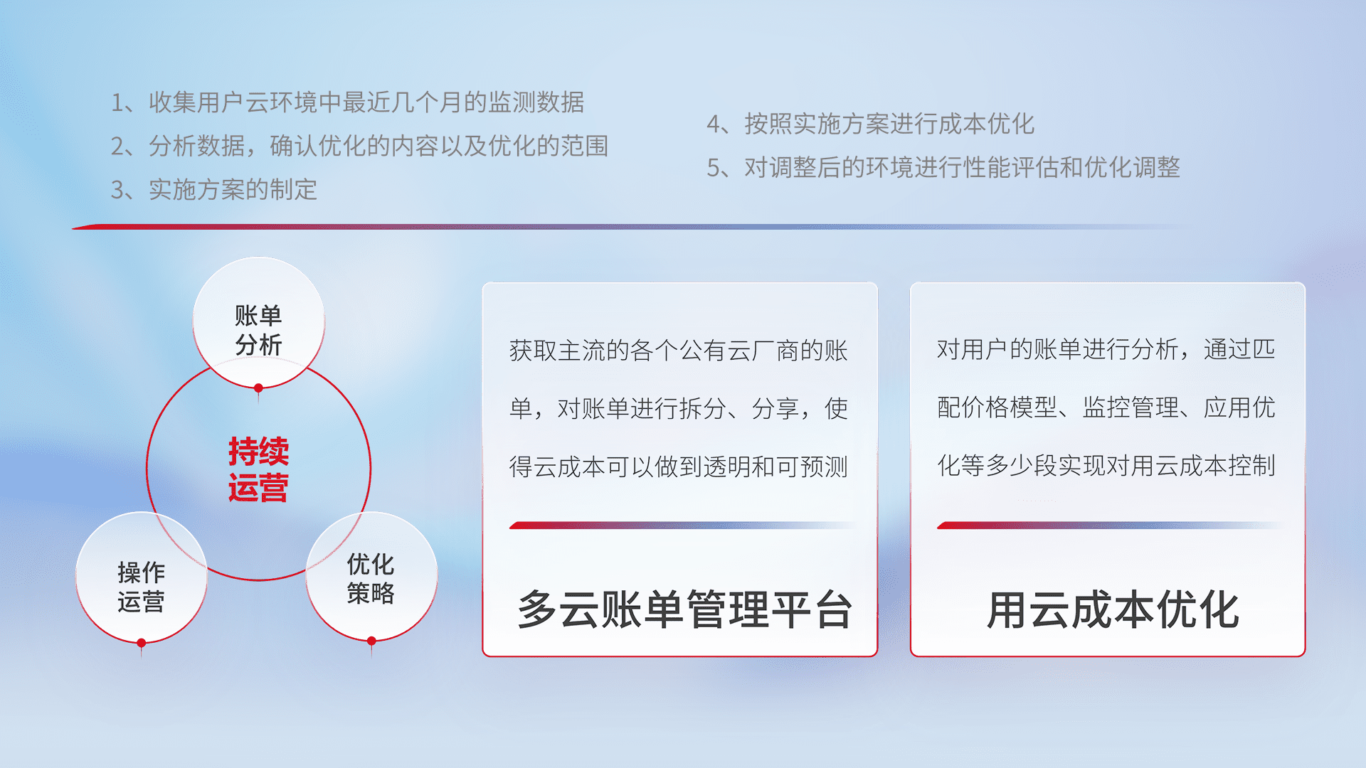 监控业务系统资源开销,,,对资源的消耗精确计量,,,实现费用的透明化管理,,,,不断提升资源使用率,,,,调整资源购买方式,,,降低资源费用成本,,,用云成本可预测、、、用云费用可优化,,云资源配额有据可依。。